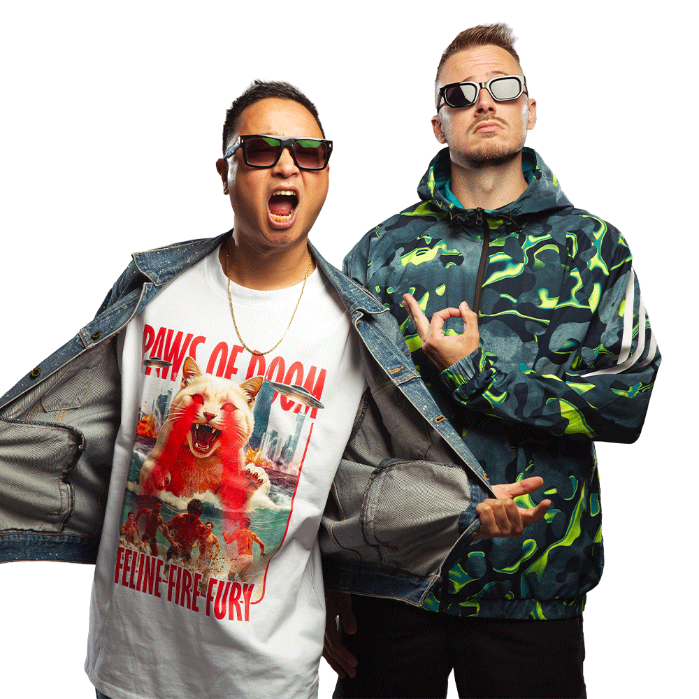 Samen vormen zij een onafscheidelijk duo dat bekendstaat om catchy melodieën, harde kicks en pure energie. Hun chemie spat van het podium en maakt ieder optreden intens en onvergetelijk.